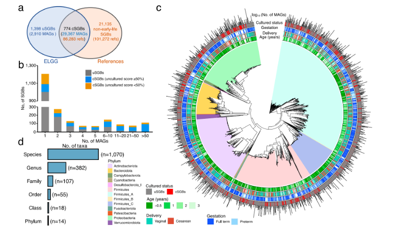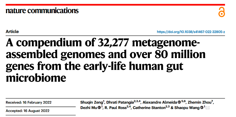 祝贺华西第二医院王少璞副研究员和苏州大学周哲敏教授合作在国际期刊 Nature Communications 发表了题为 “A compendium of 32,277 metagenome-assembled genomes and over 80 million genes from the early-life human gut microbiome” 的研究成果,率先构建了目前国际上最大的婴幼儿肠道菌群基因组和基因参考目录。